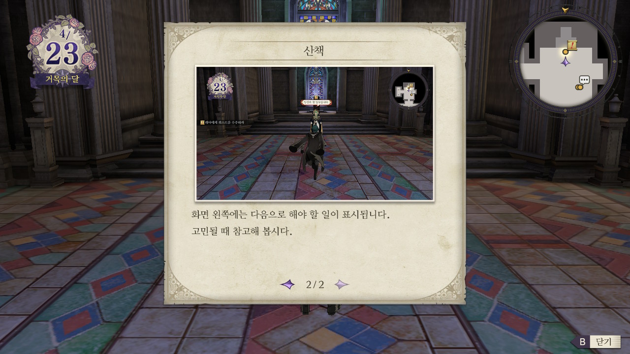 첫번째 전투 후 컷씬에 나왔던 그 시간을 돌리는 능력인데, 다시 쓸 수 있게 됐다! 이거 그냥 말하자면 실행취소(ㅋㅋ)에 가까운 기능인데 이렇게 설정을 구현해서 넣어놨네... 넘 좋다. 나는 메타적으로 필요한 기능을 세계관 내에서 설정을 짜맞춰서 그럴 듯하게 만들어주는 게 너무 좋더라