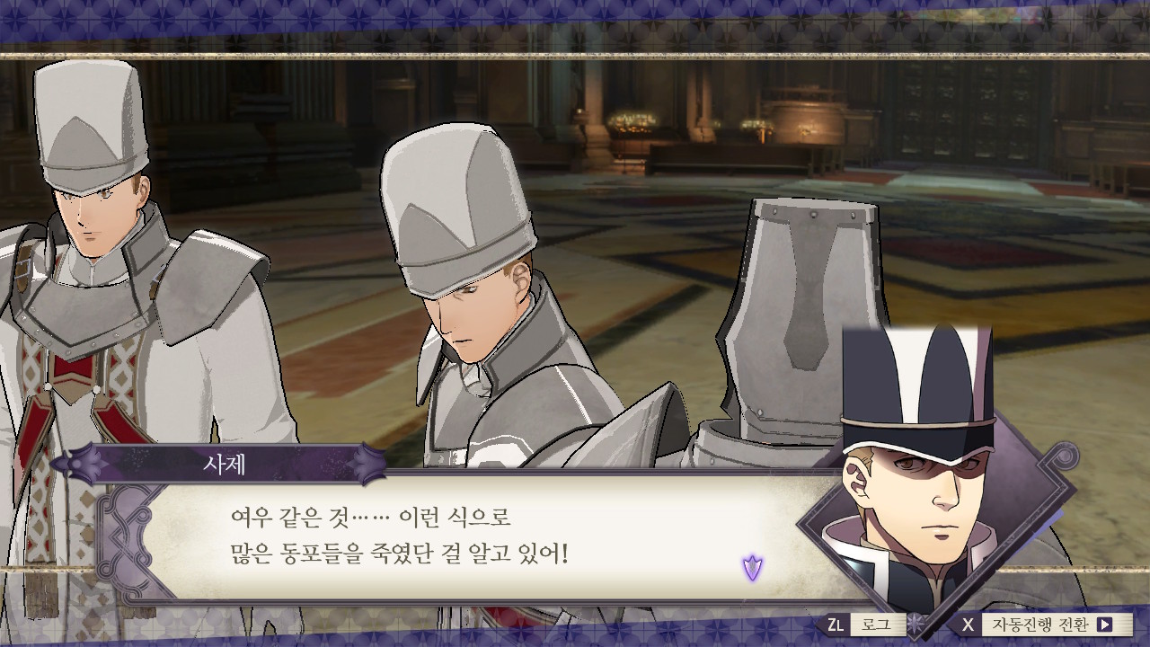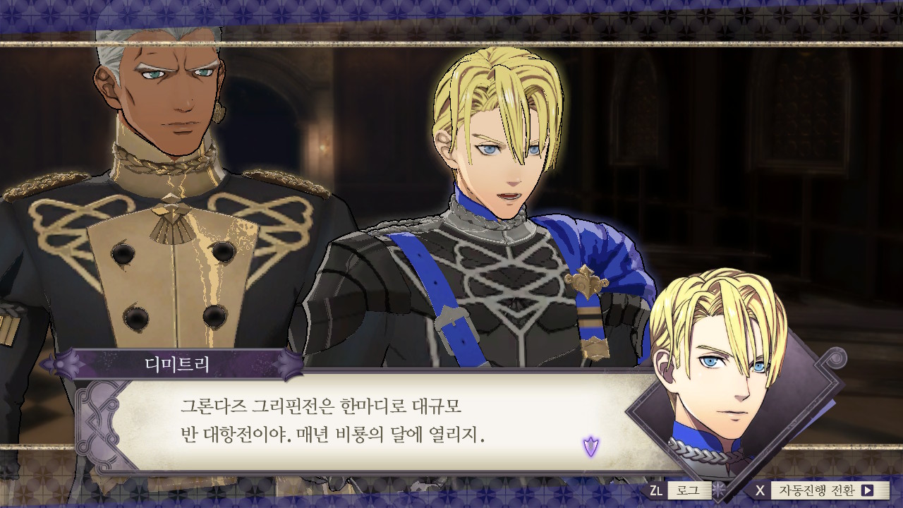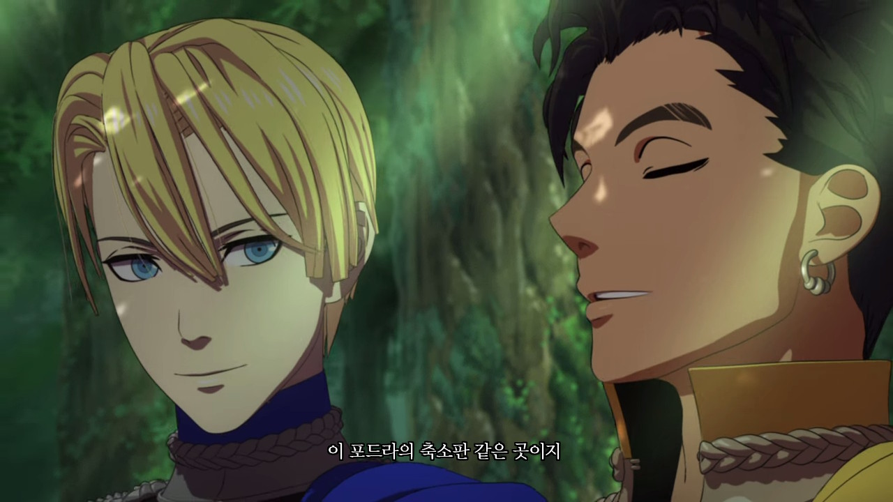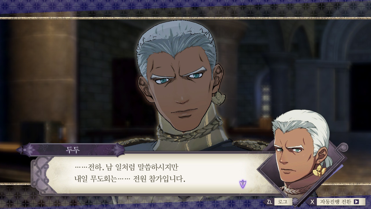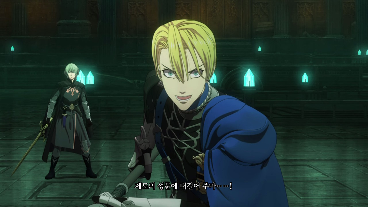 글고 이건 길어져서 걍 텍스트로 얘기하자면 위~에서 얘기했던 두두(더스커인)가 박해받게 된 계기인 사건이 있는데 4년 전에 퍼거스 신성 왕국 국왕이 더스커인에게 살해당하는 일이 발생함 (위에서 디미트리가 부모님 돌아가셨다고 한 게 이 얘기인듯) 이 때 로나토 경의 아들인 크리스토프가 사건에 관여한 죄로 교단에 의해 처형됨 (근데... 왕국에서 일어난 일인데 왜 교단이??) 교단 입장에서는 혼란스러운 왕국 대신에 교의에 따라 판단한 것 뿐이라는데... 그건 왕으로 즉위한 디미트리가 할 일이 아닌가?? 세이로스 교단이 제국/왕국/귀족 동맹 어디에도 속하지 않았다는 건 알겠는데... 그건 그거고 왜?? 그걸?? 교단이?! 뭐 잘 모르겠지만 암튼 그래서 로나토 경은 교단과 교단에 크리스토프를 넘긴 누군가를 원망해서 이 일을 일으켰다고 한다...