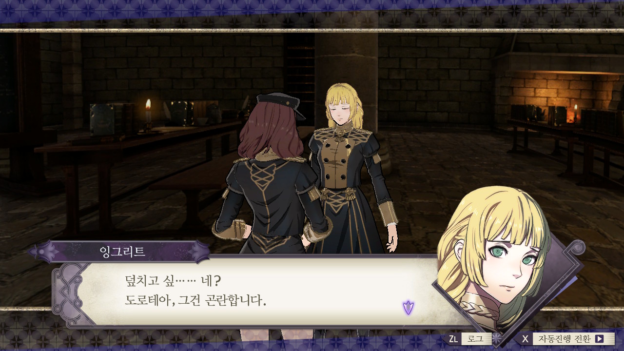 얘네 지원회화도 되게 뒷 얘기가 궁금한데... 잉그리트 쪽이 더스커인인 두두를 굉장히 불편해함 왜냐면 으으음.. 사실 나 이 겜 배경 잘 모르는데... 더스커인이 관여된 참극에서 잉그리트의 약혼자가 죽었다고 한다 6ㅅ9 흠~~ 머 이해 못할 것도 아닌 심경이지 물론 그래선 안 되지만...