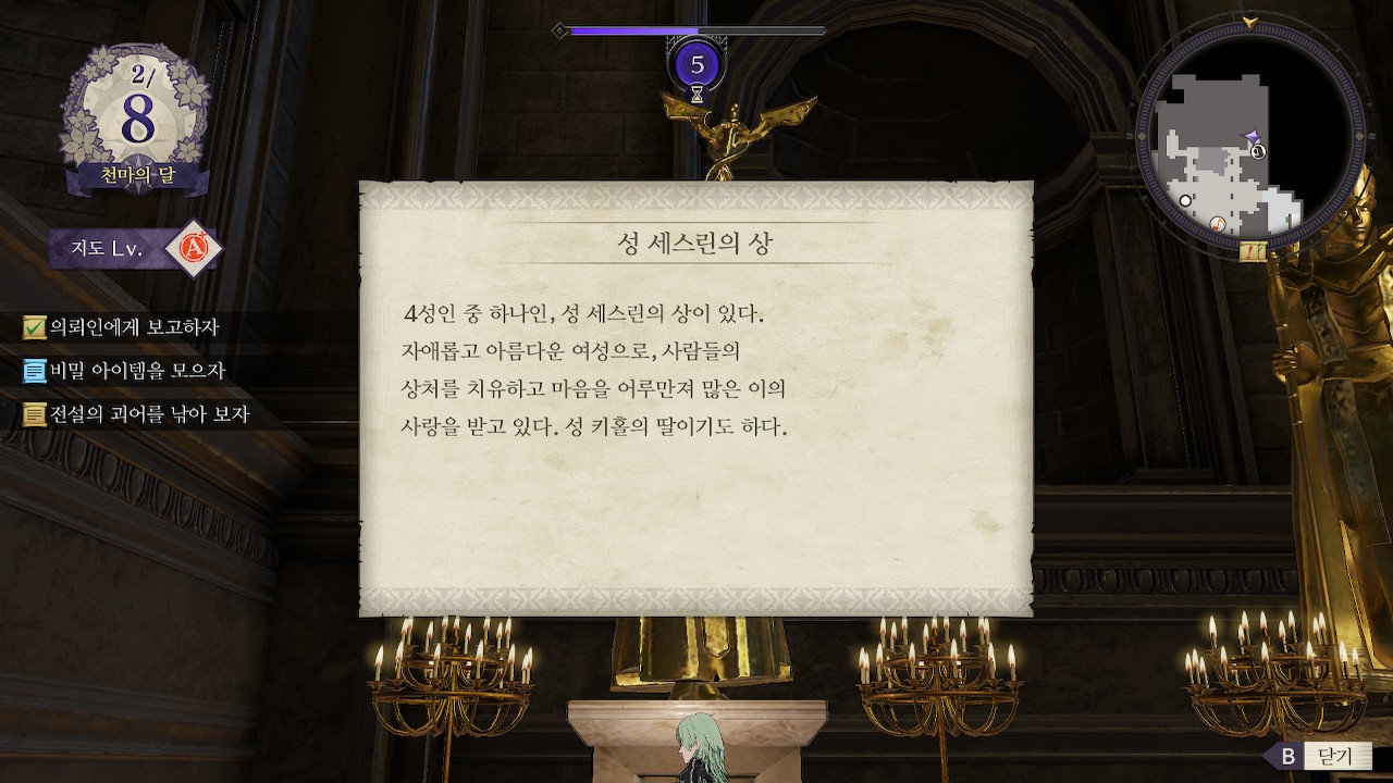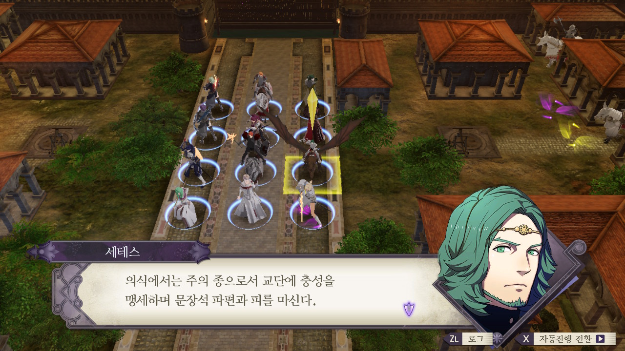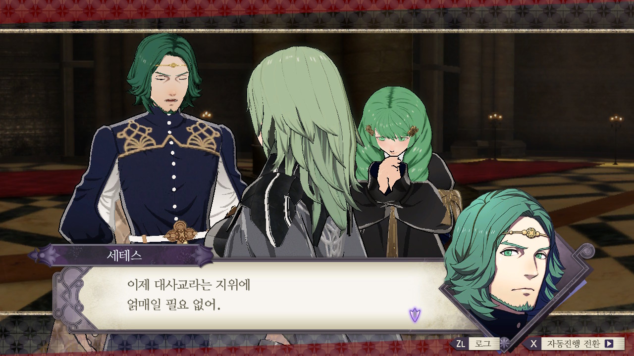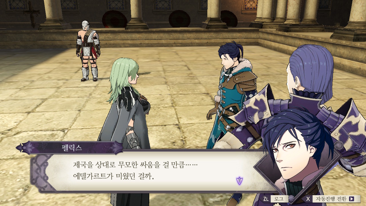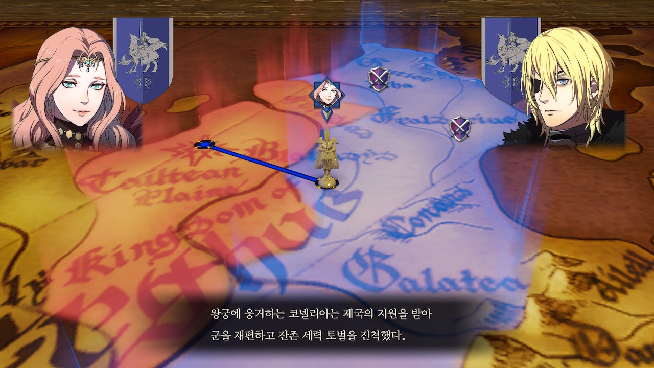 상황은 청사자 루트랑 크게 다르지 않네... 퍼거스 왕국 왕가 몰살>코델리아의 공국이 됨/동맹은 친제국(로렌츠 가문), 반제국(클로드 가문)으로 나뉘어져서 싸우고 있고... 교단 루트는 교단이 새로운 세력이 돼서 주축이 되는 건가 본데