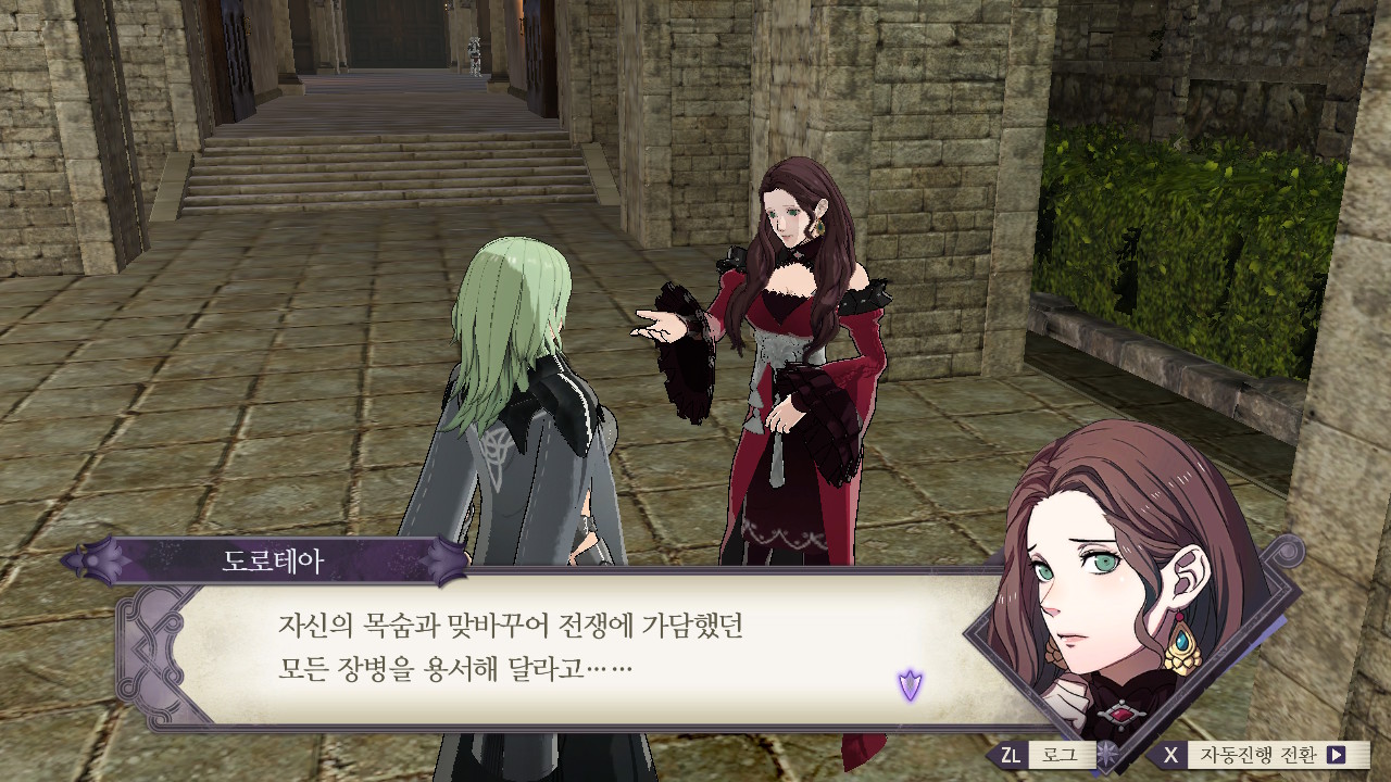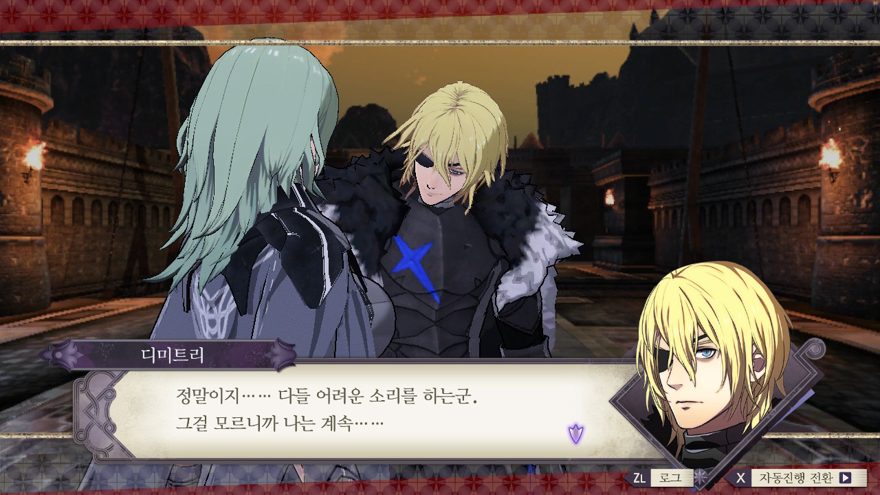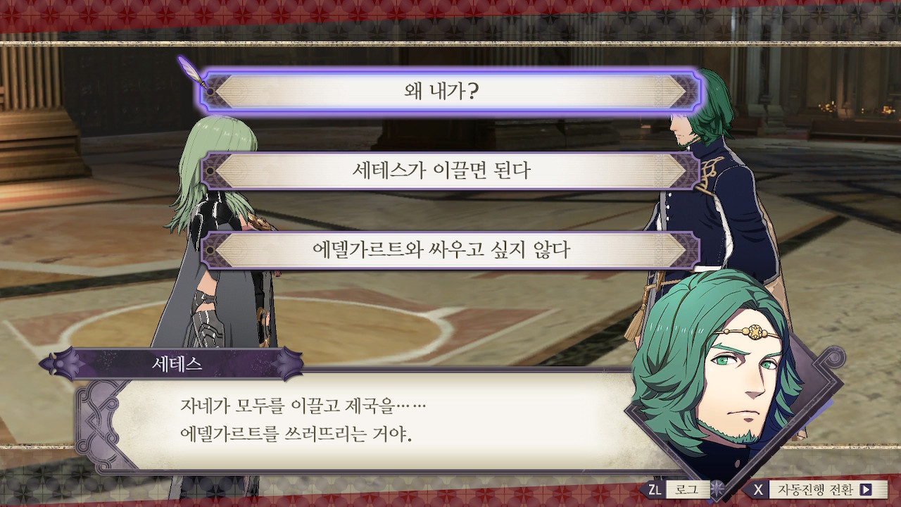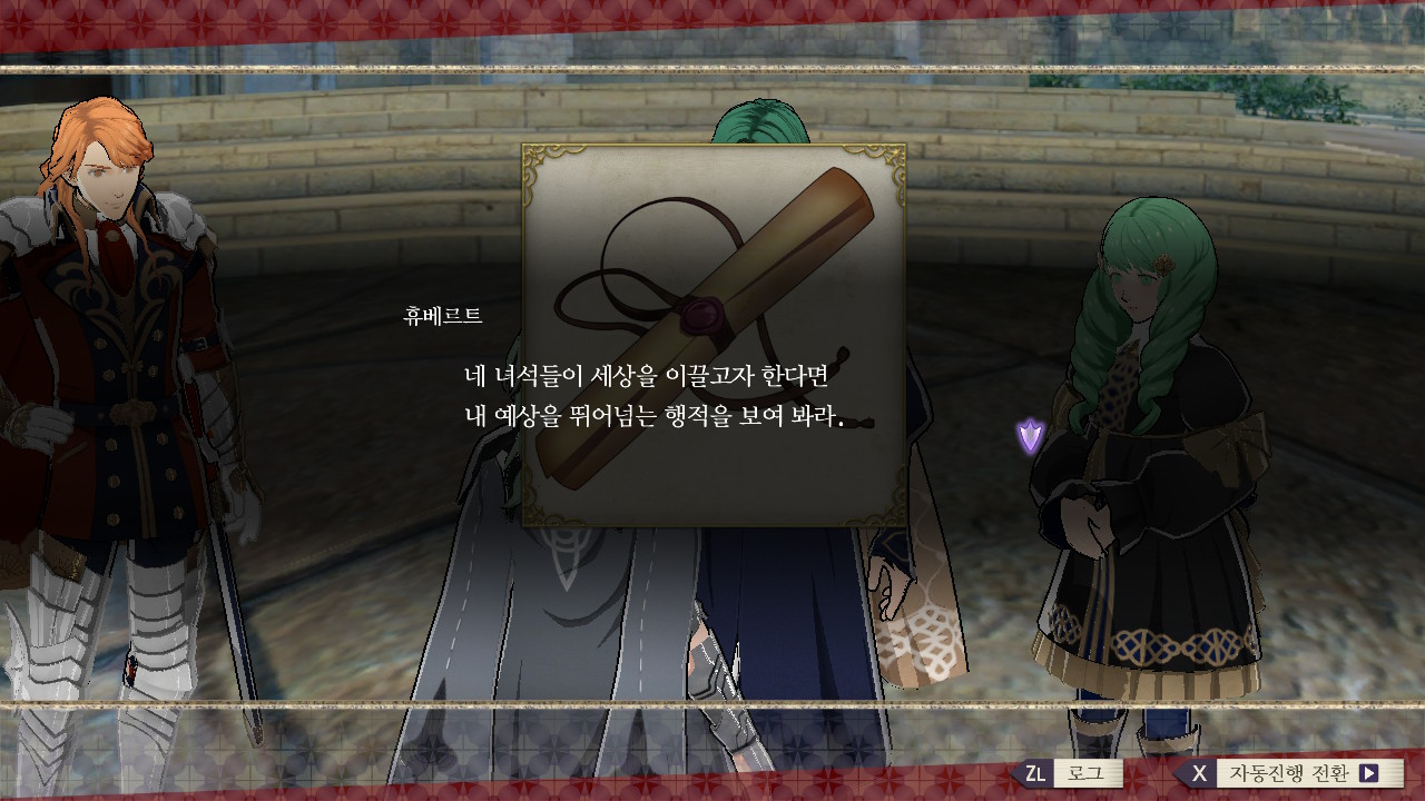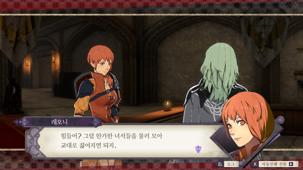 대충 니네랑 같이 싸우진 않을 거지만 자기는 에델가르트의 목을 디미트리에게 바칠 거고~ 레아가 황성에 감금 되어있다는 소식을 전해줌