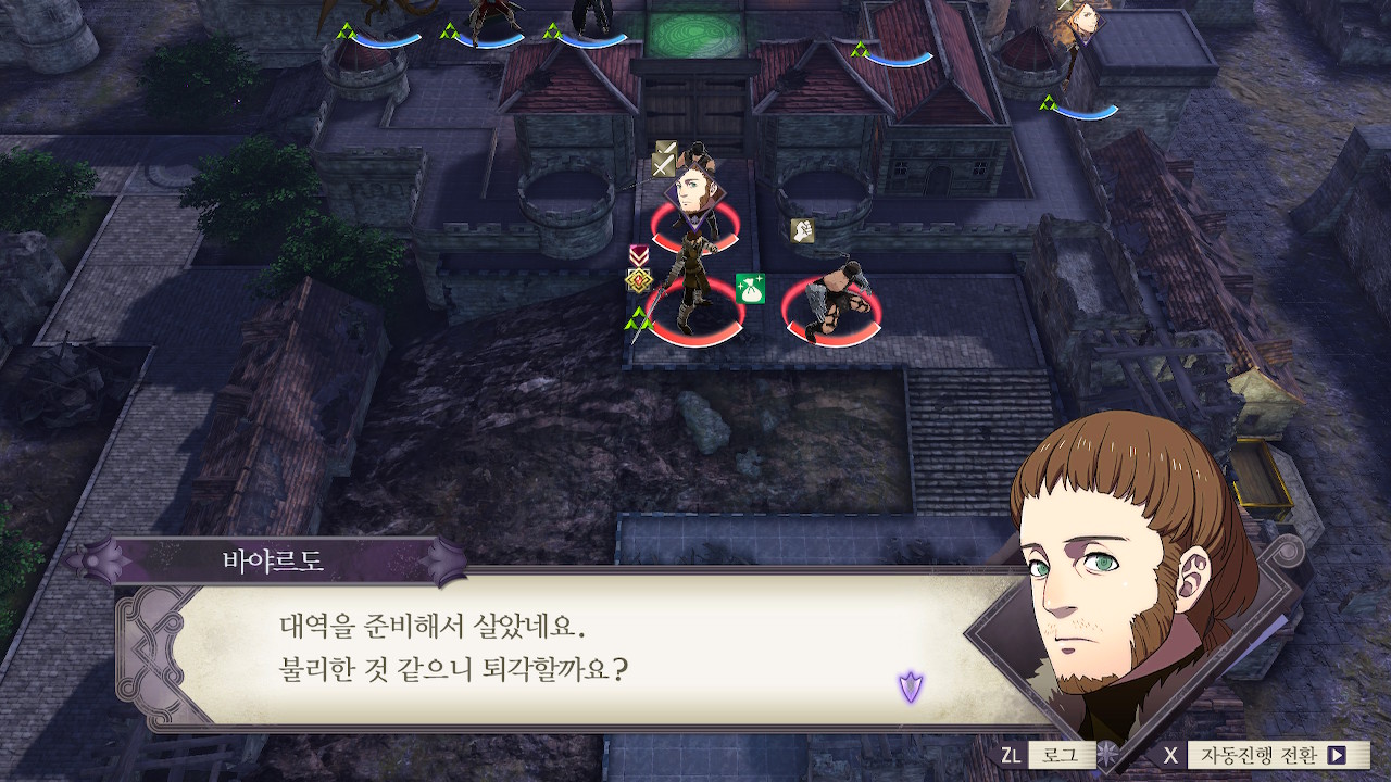 이 사람은 여전히 쓰레기 아버지고... 뭐 암튼 대교를 점령했으니 합류를 하던 거길 지나가게 해주던 해달라고 함~ 이쪽은 전투를 막 마친 참이라 여윳손이 없기 때문에 합류는 무리고 대교만 열어주기로
